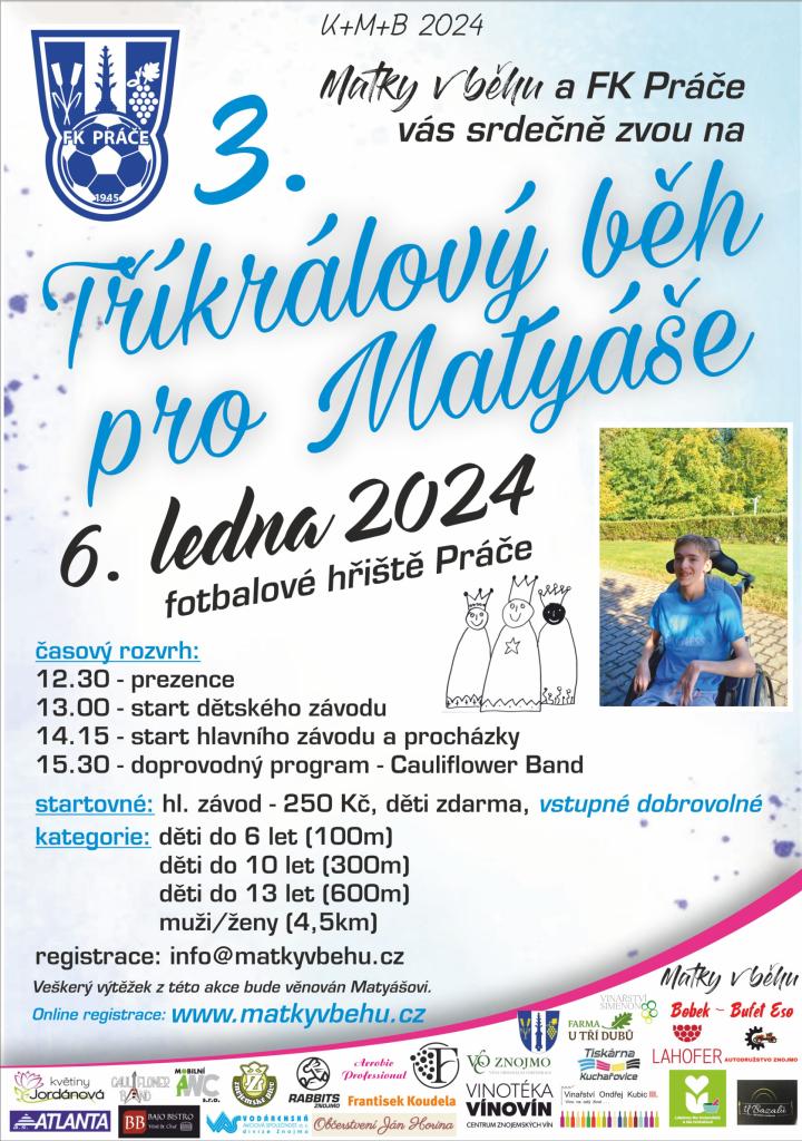 6. 1. 2024 pořádá spolek Matky v běhu a FK Práče na fotbalovém hřišti v Práčích akci na podporu Matyáše z Dobšic. Bližší informace a registrace: www.matkyvbehu.cz .