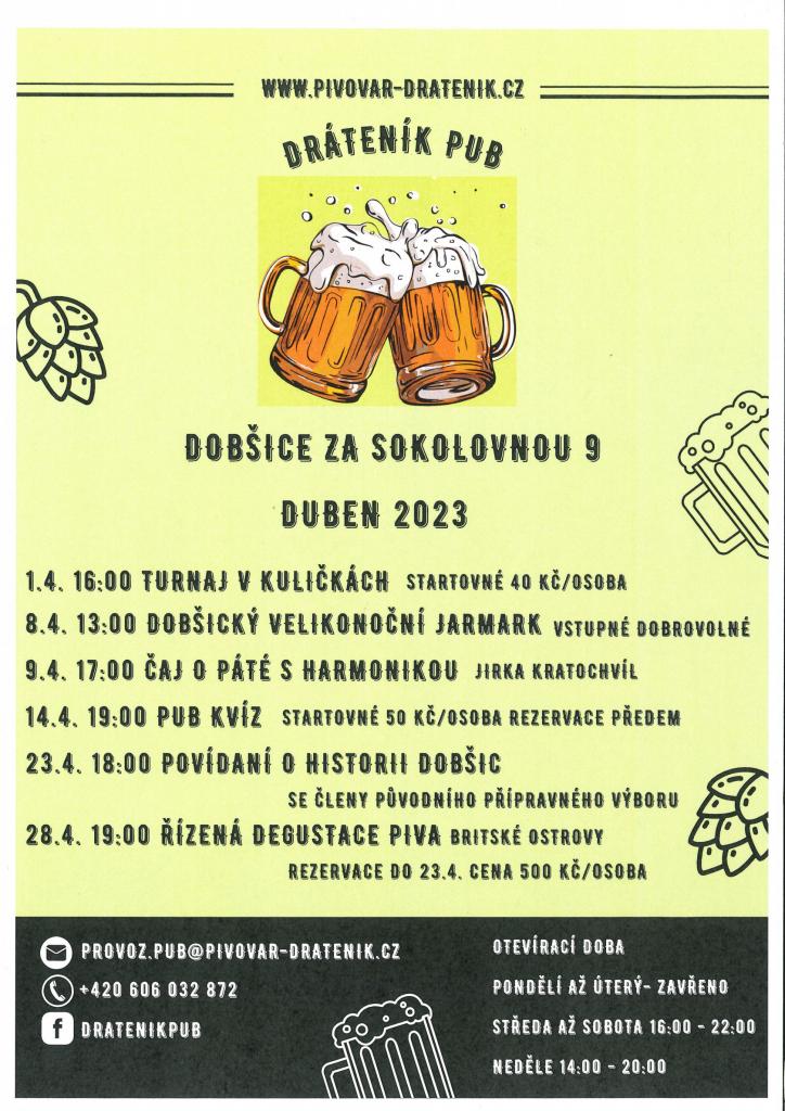 Zveme Vás na akce do hospůdky pod sokolovnou - Dráteník PUB, které se budou konat v měsíci duben.