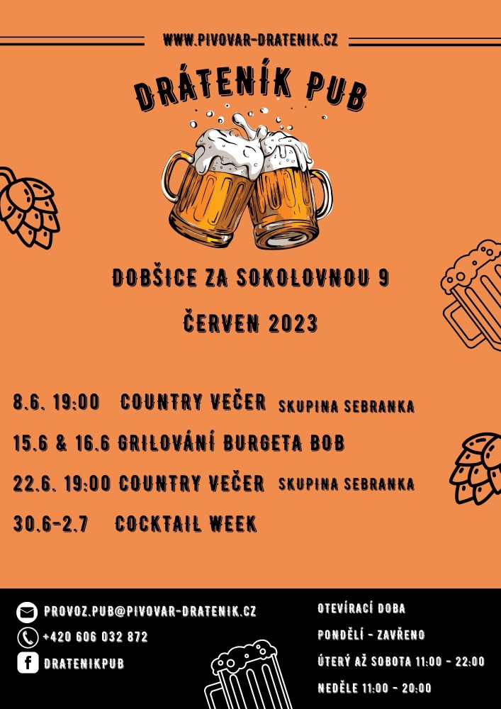 Zveme Vás na akce do hospůdky pod sokolovnou - Dráteník PUB, které se budou konat v měsíci červnu.